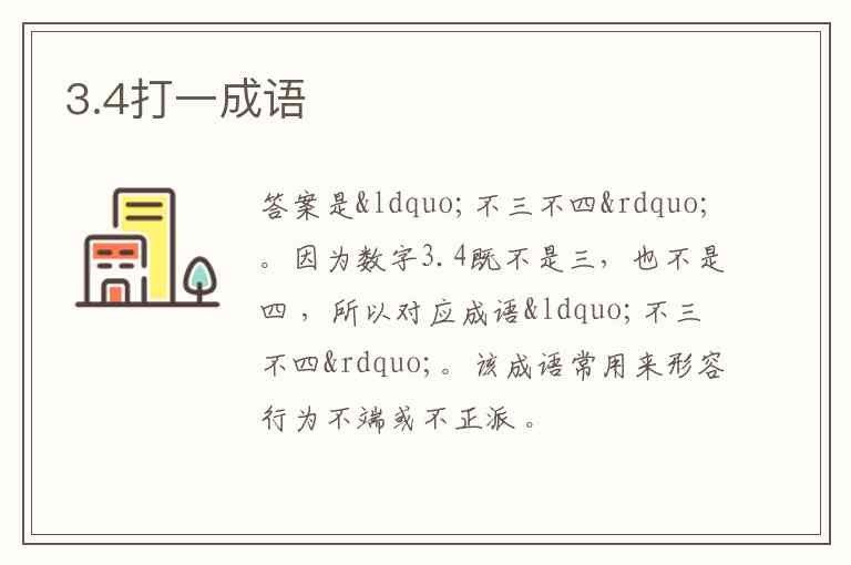 因为数字3.4既不是三,也不是四 ,所以对应成语“不三不四”。