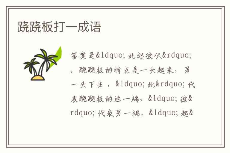 跷跷板的特点是一头起来,另一头下去 ,“此”代表跷跷板的这一端,“彼”代表另一端,“起”和“伏”正好对应跷跷板一上一下的状态,所以是成语“此起彼伏”。