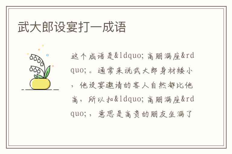 通常来说武大郎身材矮小,他设宴邀请的客人自然都比他高,所以扣“高朋满座”,意思是高贵的朋友坐满了席位,形容宾客很多 。