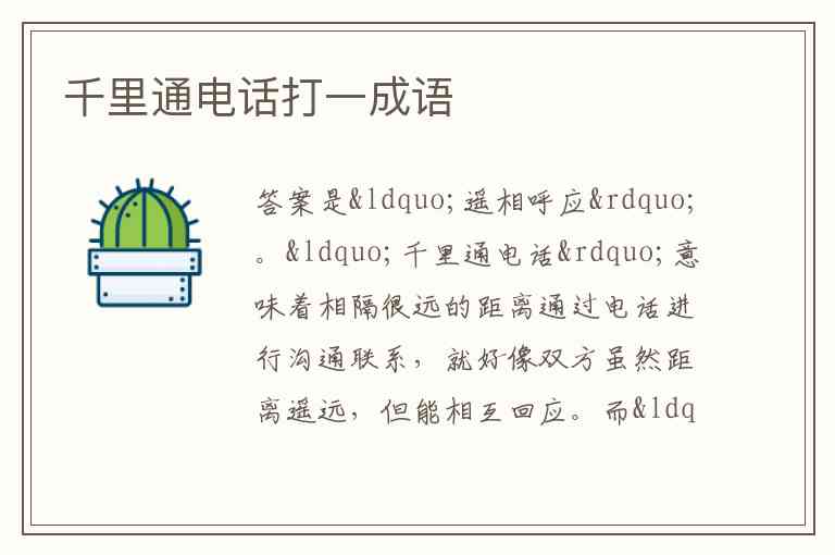 所以“千里通电话”打一成语的谜底是“遥相呼应”。