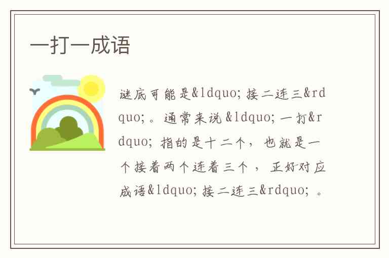 通常来说 “一打” 指的是十二个,也就是一个接着两个连着三个 ,正好对应成语“接二连三” 。