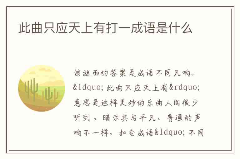 “此曲只应天上有”意思是这样美妙的乐曲人间很少听到 ,暗示其与平凡、普通的声响不一样,扣合成语“不同凡响”,该成语常用来形容事物不平凡,很出色。