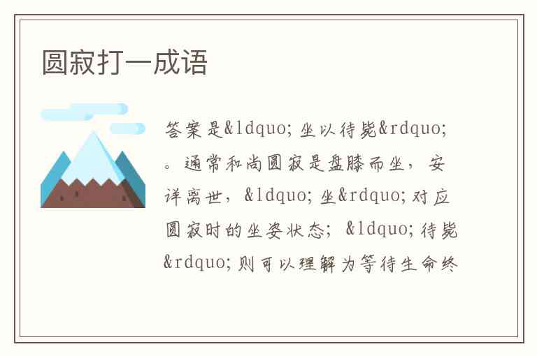 通常和尚圆寂是盘膝而坐,安详离世,“坐”对应圆寂时的坐姿状态;“待毙”则可以理解为等待生命终结,契合圆寂代表的死亡含义 ,所以谜底是“坐以待毙” 。