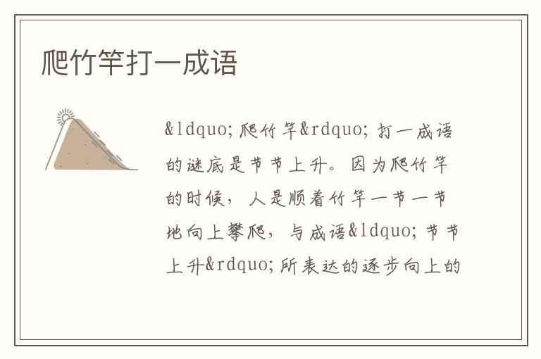 “爬竹竿”打一成语的谜底是节节上升。