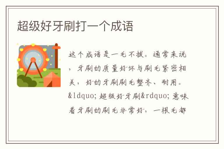 “超级好牙刷”意味着牙刷的刷毛非常好,一根毛都不会掉,对应成语“一毛不拔” 。