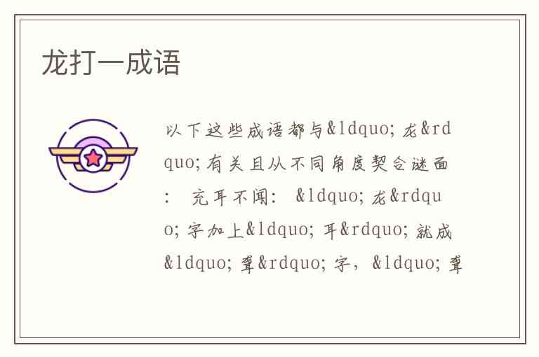 以下这些成语都与“龙”有关且从不同角度契合谜面: 充耳不闻: “龙”字加上“耳”就成“聋”字,“聋”意味着听不见,所以扣“充耳不闻” 。