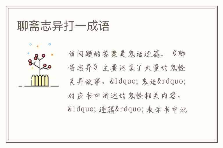 《聊斋志异》主要记录了大量的鬼怪灵异故事,“鬼话”对应书中讲述的鬼怪相关内容,“连篇”表示书中此类故事众多,一篇接着一篇,所以用“鬼话连篇”来形容十分贴切 。