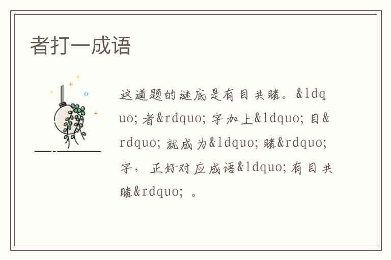 “者”字加上“目”就成为“睹”字,正好对应成语“有目共睹” 。