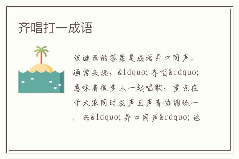正好与“齐唱”的情景相呼应,即大家从不同的口中发出同样的声音来唱歌,所以谜底是“异口同声”。