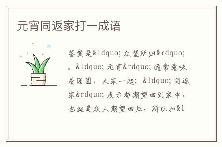 “元宵”通常意味着团圆,大家一起;“同返家”表示都期望回到家中,也就是众人期望回归,所以扣“众望所归”这个成语 。
