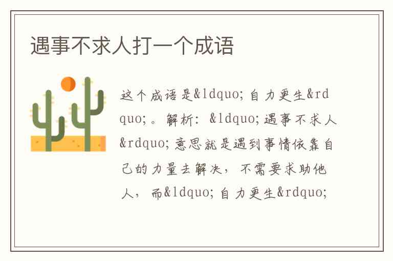 解析:“遇事不求人”意思就是遇到事情依靠自己的力量去解决,不需要求助他人,而“自力更生”恰好表达的是依靠自己的力量把事情办起来,二者意思相符。