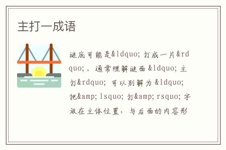 通常理解谜面 “主打” 可以别解为 “把‘打’字放在主体位置,与后面的内容形成关联” ,这里取 “一片” 来搭配,就组成成语 “打成一片” 。