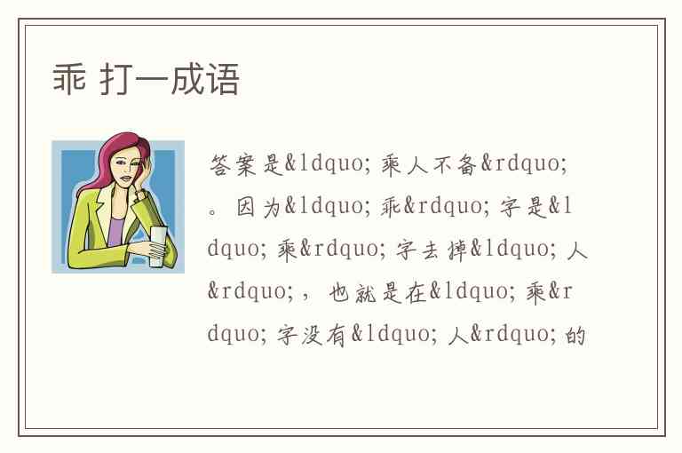 因为“乖”字是“乘”字去掉“人”,也就是在“乘”字没有“人”的情况下形成的,对应成语“乘人不备” 。