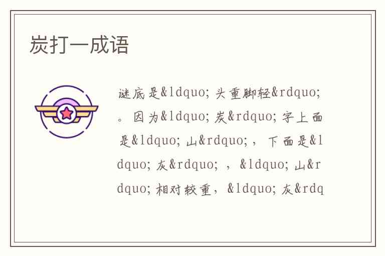因为“炭”字上面是“山”,下面是“灰” ,“山”相对较重,“灰”相对较轻,对应成语“头重脚轻” 。