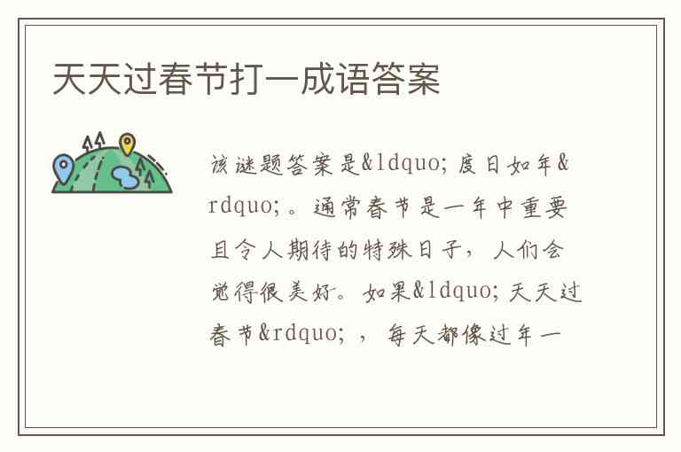 如果“天天过春节” ,每天都像过年一样,从感受上来说,就好像把平常一天当成过年那样漫长又充满期待,所以扣 “度日如年” 这个成语 。