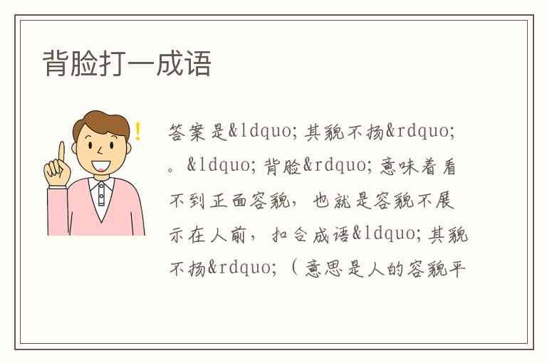 “背脸”意味着看不到正面容貌,也就是容貌不展示在人前,扣合成语“其貌不扬”(意思是人的容貌平常或丑陋 )。