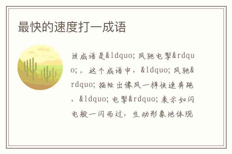 这个成语中,“风驰”描绘出像风一样快速奔跑,“电掣”表示如闪电般一闪而过,生动形象地体现出速度极快,正好契合 “最快的速度” 这一描述 。