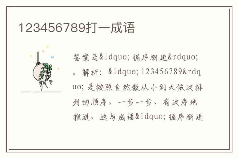 解析:“123456789”是按照自然数从小到大依次排列的顺序,一步一步、有次序地推进,这与成语“循序渐进”所表达的按照一定的顺序、步骤逐渐推进的意思相契合 。
