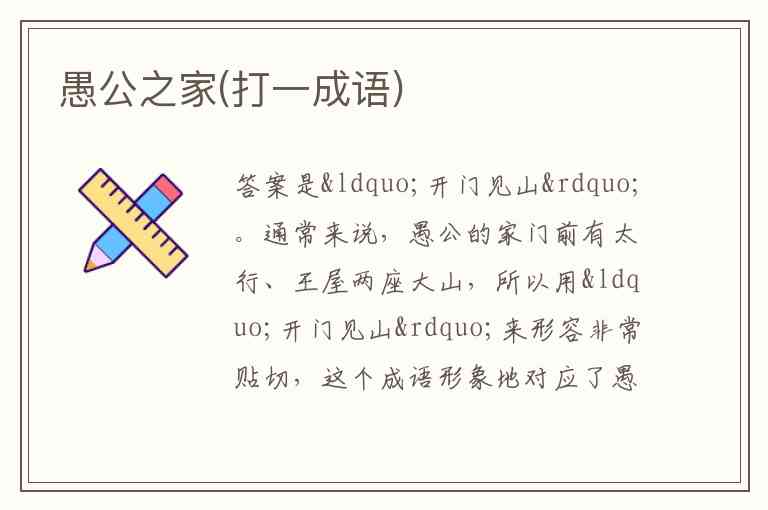 通常来说,愚公的家门前有太行、王屋两座大山,所以用“开门见山”来形容非常贴切,这个成语形象地对应了愚公之家所处的环境特点 。