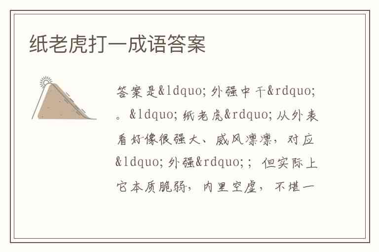 “纸老虎”从外表看好像很强大、威风凛凛,对应“外强”;但实际上它本质脆弱,内里空虚,不堪一击,这正符合“中干”的意思 。