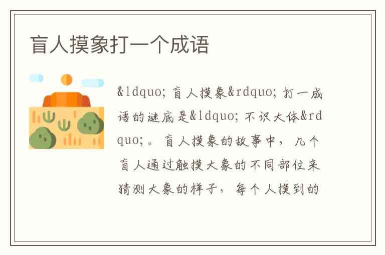 “盲人摸象”打一成语的谜底是“不识大体”。