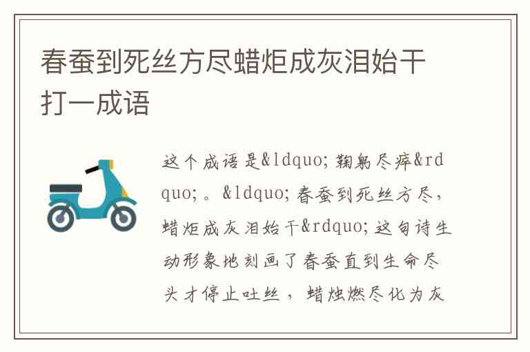 “鞠躬尽瘁”意思是指恭敬谨慎,竭尽心力,正好契合诗句所表达的全身心投入、无私奉献到极致的内涵 。