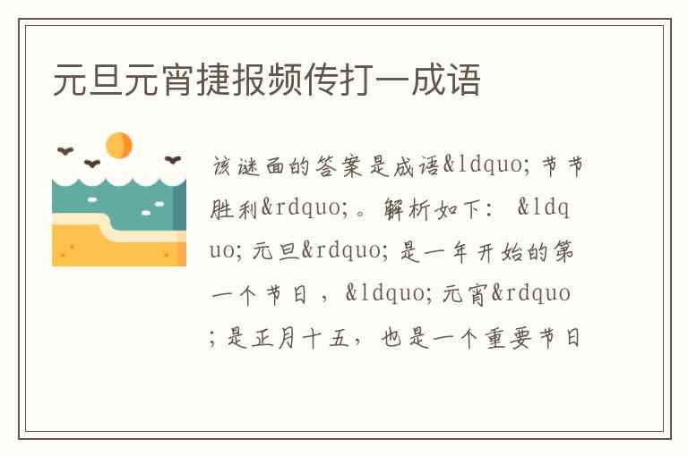 解析如下: “元旦”是一年开始的第一个节日 ,“元宵”是正月十五,也是一个重要节日,两个词都扣“节节”。