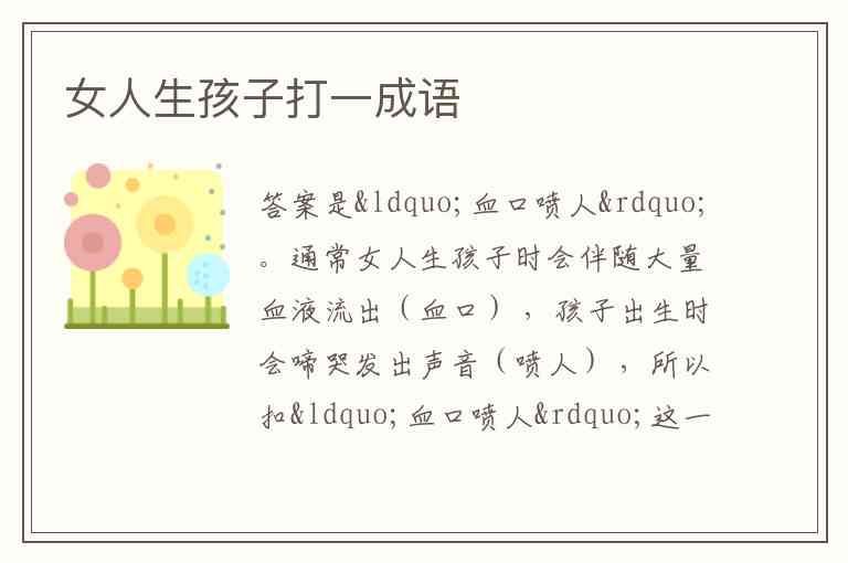 通常女人生孩子时会伴随大量血液流出(血口) ,孩子出生时会啼哭发出声音(喷人) ,所以扣“血口喷人”这一成语。