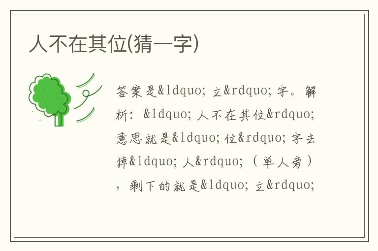 解析:“人不在其位”意思就是“位”字去掉“人”(单人旁),剩下的就是“立”字。