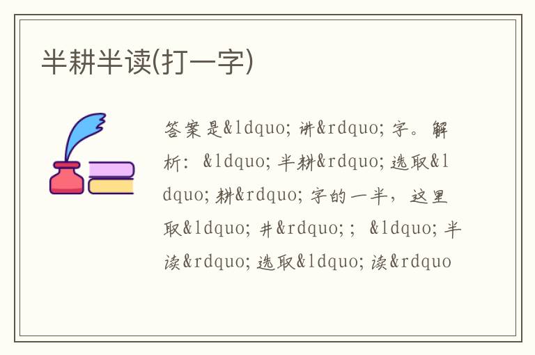半耕半读(打一字)