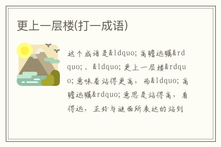 更上一层楼(打一成语)
