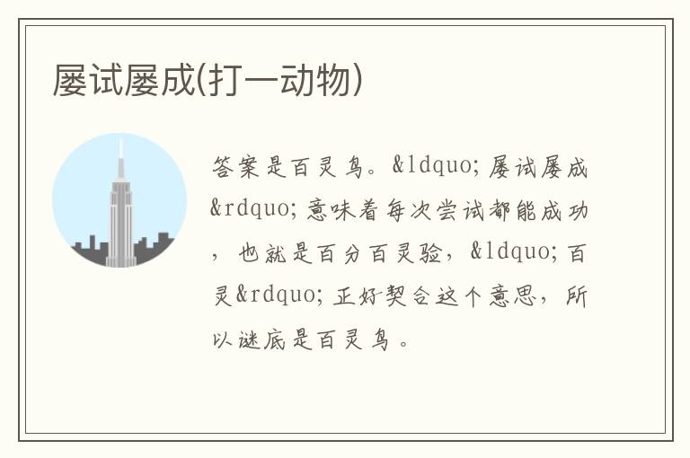 答案是百灵鸟。“屡试屡成”意味着每次尝试都能成功,也就是百分百灵验,“百灵”正好契合这个意思,所以谜底是百灵鸟 。