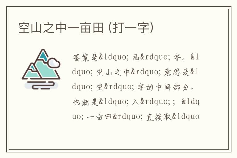 “空山之中”意思是“空”字的中间部分,也就是“八”;“一亩田”直接取“田”字。把“八”和“田”组合起来,就形成了“画”字。
