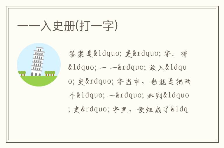 一一入史册(打一字)
