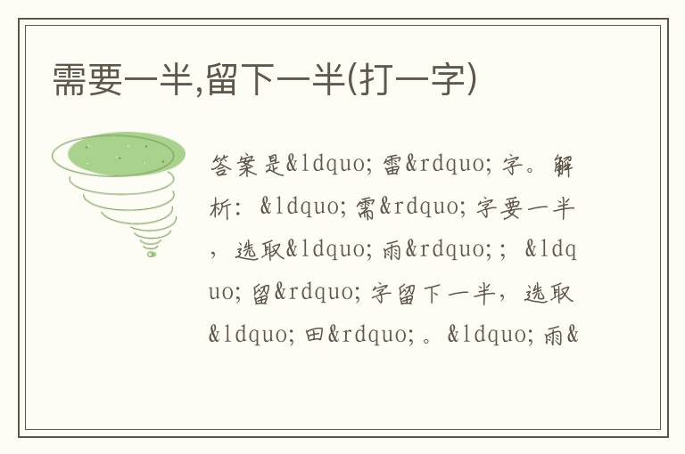 需要一半,留下一半(打一字)