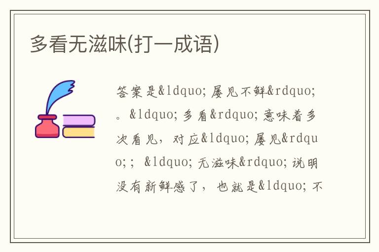 “多看”意味着多次看见,对应“屡见”;“无滋味”说明没有新鲜感了,也就是“不鲜” ,所以这个成语是“屡见不鲜”。