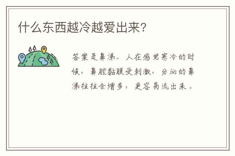 答案是鼻涕。人在感觉寒冷的时候,鼻腔黏膜受刺激,分泌的鼻涕往往会增多,更容易流出来 。