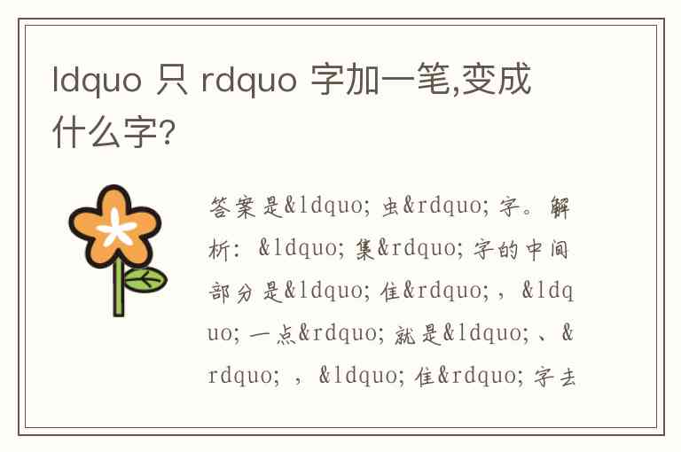 ldquo 只 rdquo 字加一笔,变成什么字?