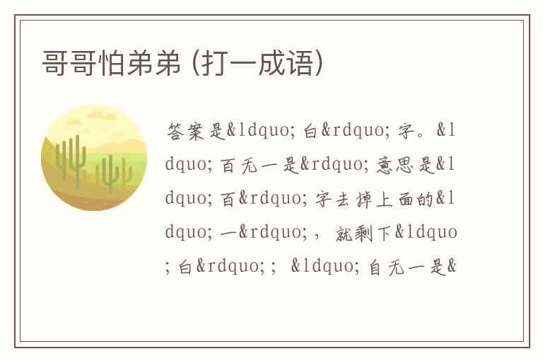 “百无一是”意思是“百”字去掉上面的“一”,就剩下“白”;“自无一是”同理,“自”字去掉里面的“一”,也是“白”;“泉水流”,“泉”字的“水(氵)”流走了,同样剩下“白”。所以综合来看,这个字就是“白”。