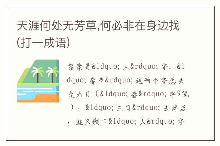 “春节”这两个字总共是九日(“春”字9笔 ),“三日”去掉后,就只剩下“人”字。