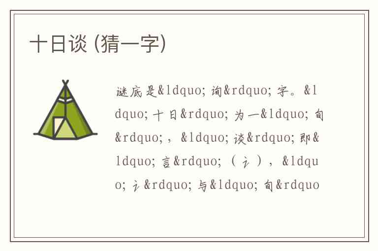 “十日”为一“旬”,“谈”即“言”(讠),“讠”与“旬”组合起来就是“询”字。