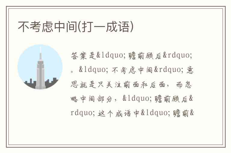 “不考虑中间”意思就是只关注前面和后面,而忽略中间部分,“瞻前顾后”这个成语中“瞻前”表示看前面,“顾后”表示看后面 ,正好符合谜面意思。