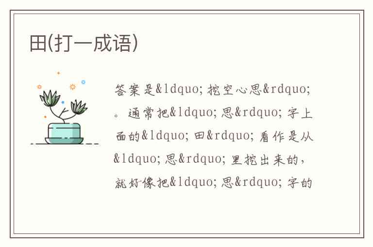田(打一成语)