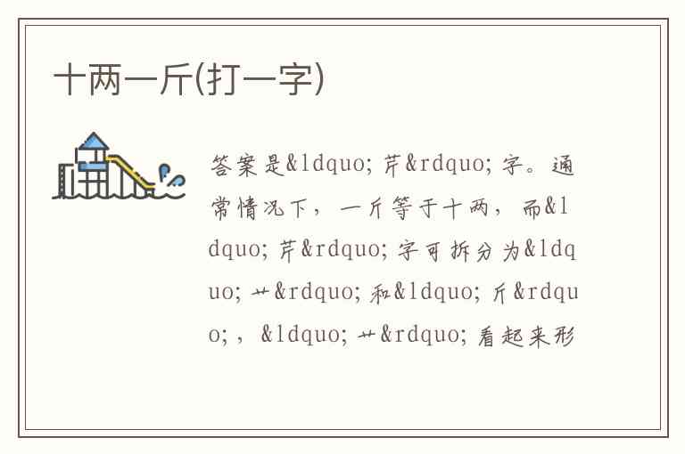 十两一斤(打一字)