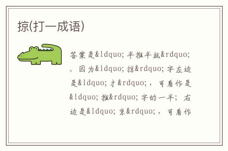 因为“掠”字左边是“扌”,可看作是“推”字的一半;右边是“京”,可看作是“就”字的一半,所以对应成语“半推半就” 。