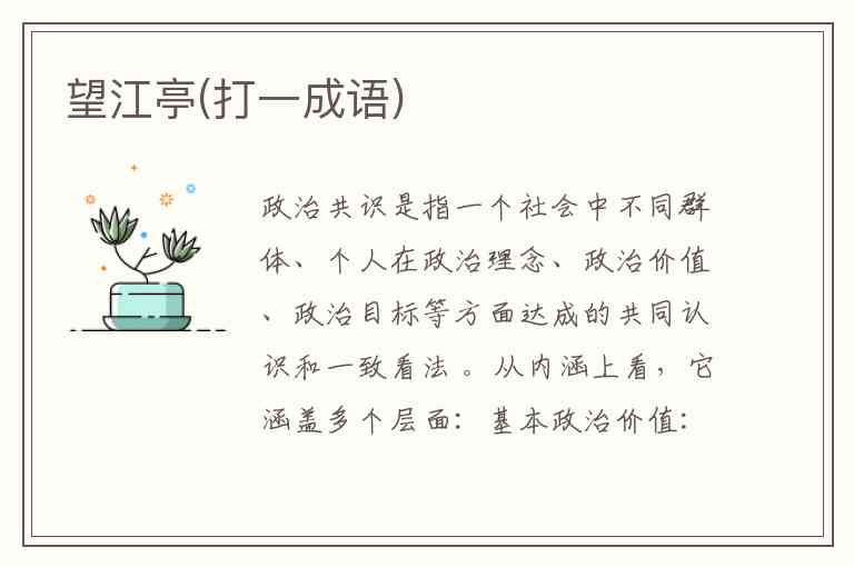 “望江亭”是靠近江水的亭子,人们站在亭中可以观赏江景。“近水楼台”这个成语原意为靠近水边的楼台能先见到月亮,在这里正好形象地对应了“望江亭”靠近江水这一特点 。