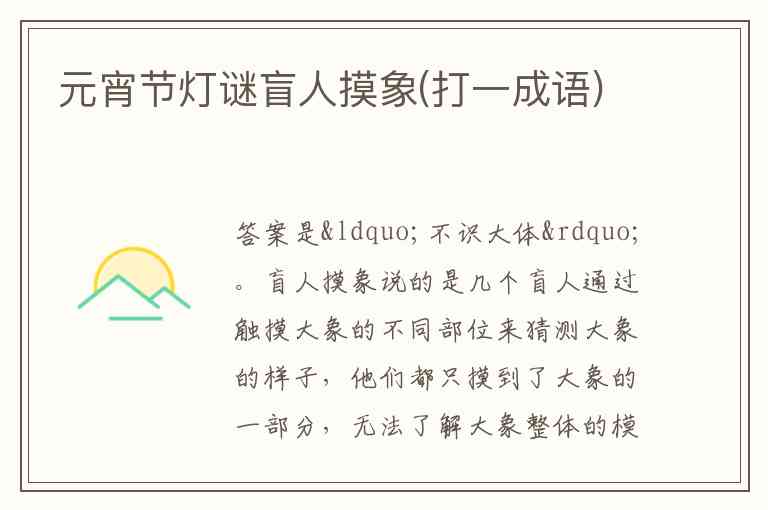 元宵节灯谜盲人摸象(打一成语)