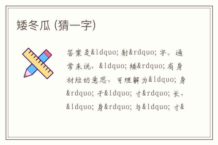 通常来说,“矮”有身材短的意思,可理解为“身”子“寸”长,“身”与“寸”组合起来就是“射”字 。