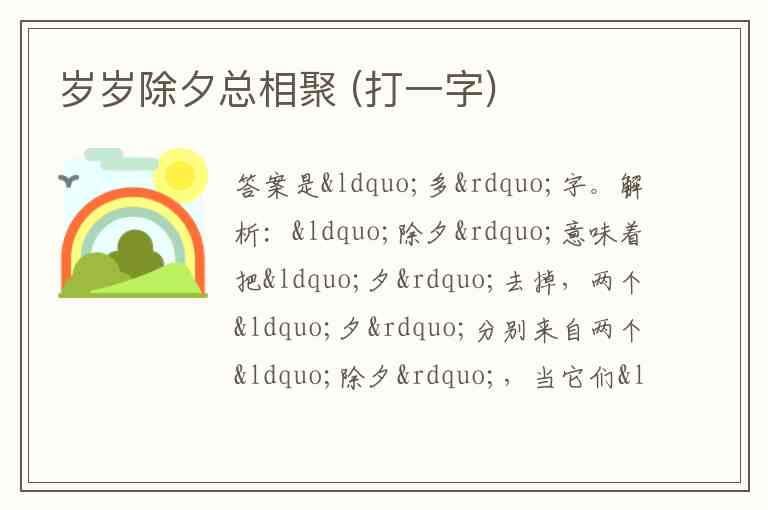 岁岁除夕总相聚 (打一字)