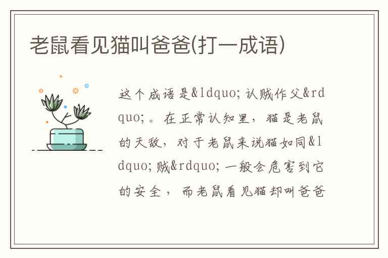 老鼠看见猫叫爸爸(打一成语)